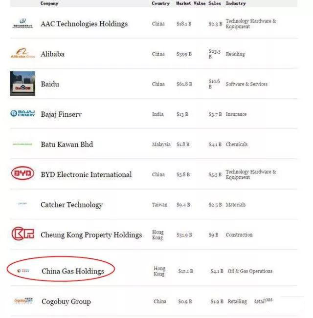 2017年8月24日,《福布斯》 新發(fā)布了2017年亞洲 佳50家上市公司榜單,中國燃?xì)鈶{借出色業(yè)績表現(xiàn)及公司經(jīng)營管理等綜合情況, 三次榮登該榜單,名列 9位。