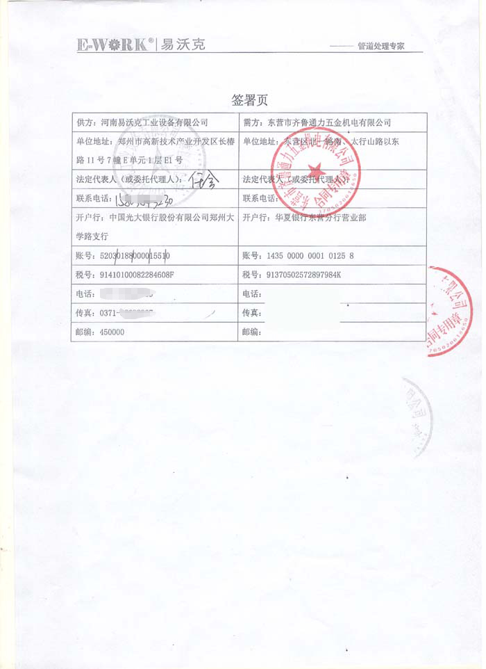 2017年東營市齊魯通力五金機(jī)電有限公司合作業(yè)績